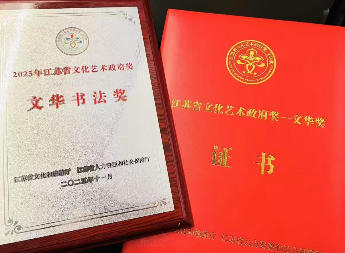 据悉, 江苏省文华奖是经省人民政府批准设立的省级专业艺术领域政府最高奖项,旨在表彰在艺术创作和表演方面取得突出成就的单位和个人,代表我省艺术创作的最高水平。奖项涵盖戏剧、音乐、舞蹈、美术、书法(含篆刻)、摄影、曲艺、杂技、民间文艺、艺术理论评论等多个专业类别,全面覆盖舞台艺术与视觉艺术、创作实践与理论研究等艺术领域。今年共评选出获奖作品及个人125项,其中书法领域全省仅有5位作者获文华奖。