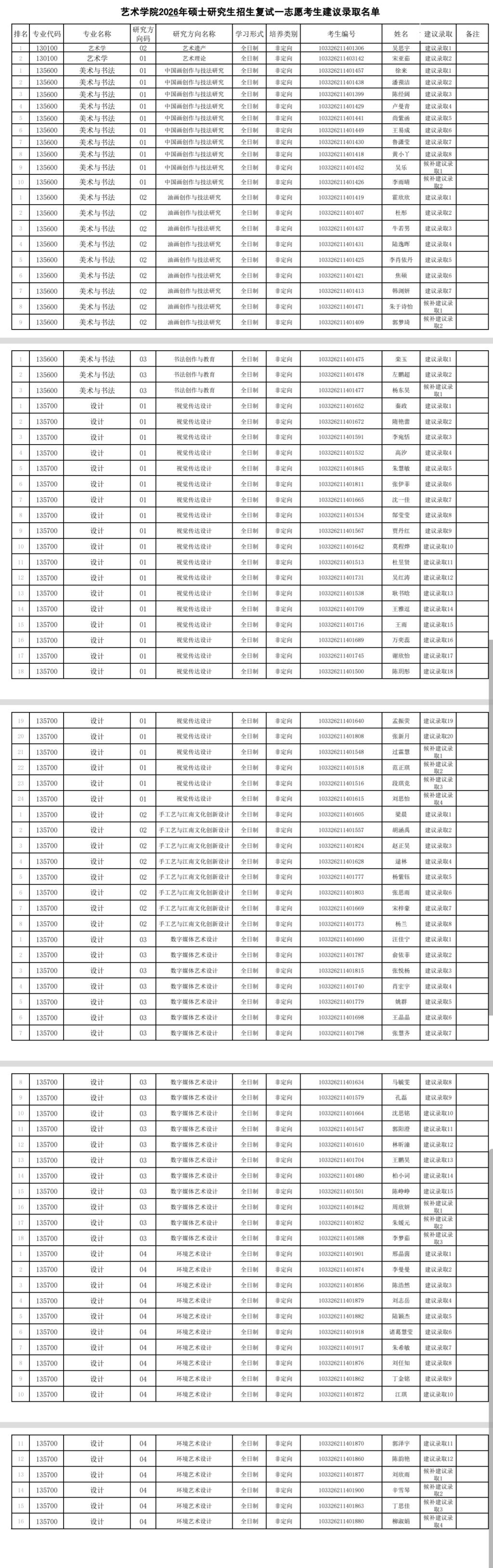 巨乳做爱 2026年硕士研究生招生复试一志愿考生建议录取名单